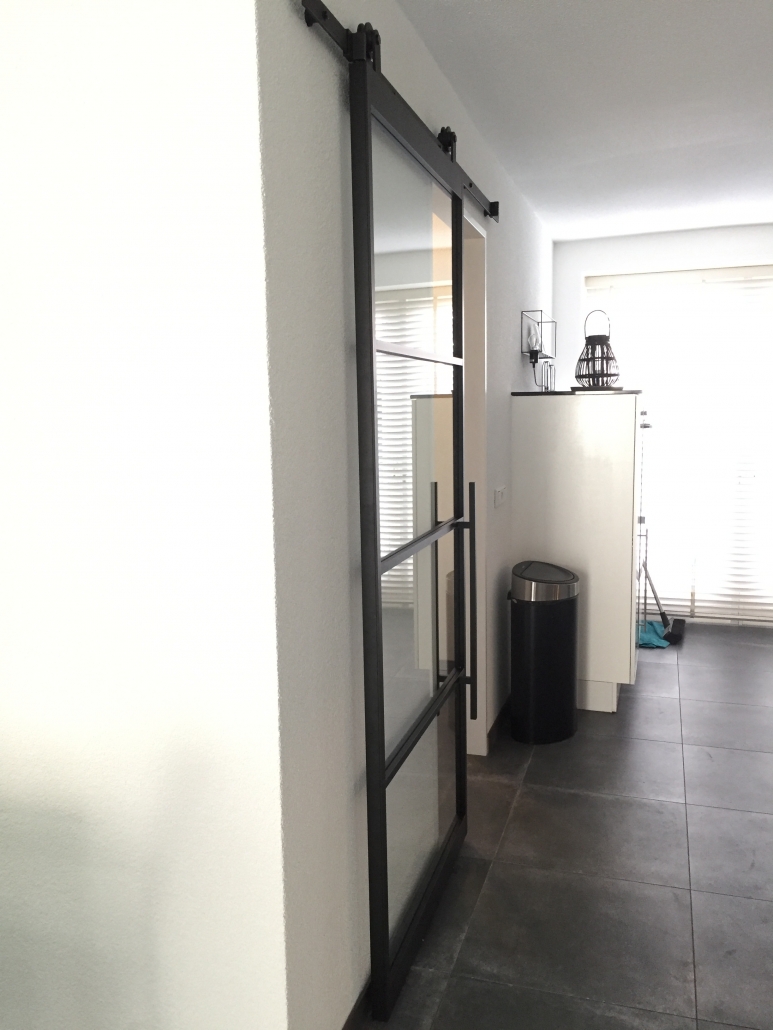 Dit huis in Nesselande voorzien van een industiële deur aan wielen en 2 deuren geleverd en afgehangen.